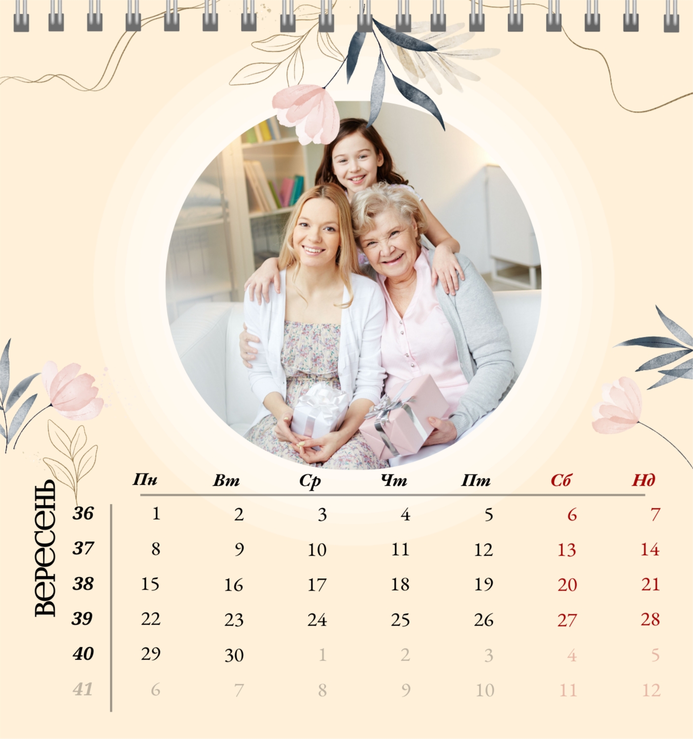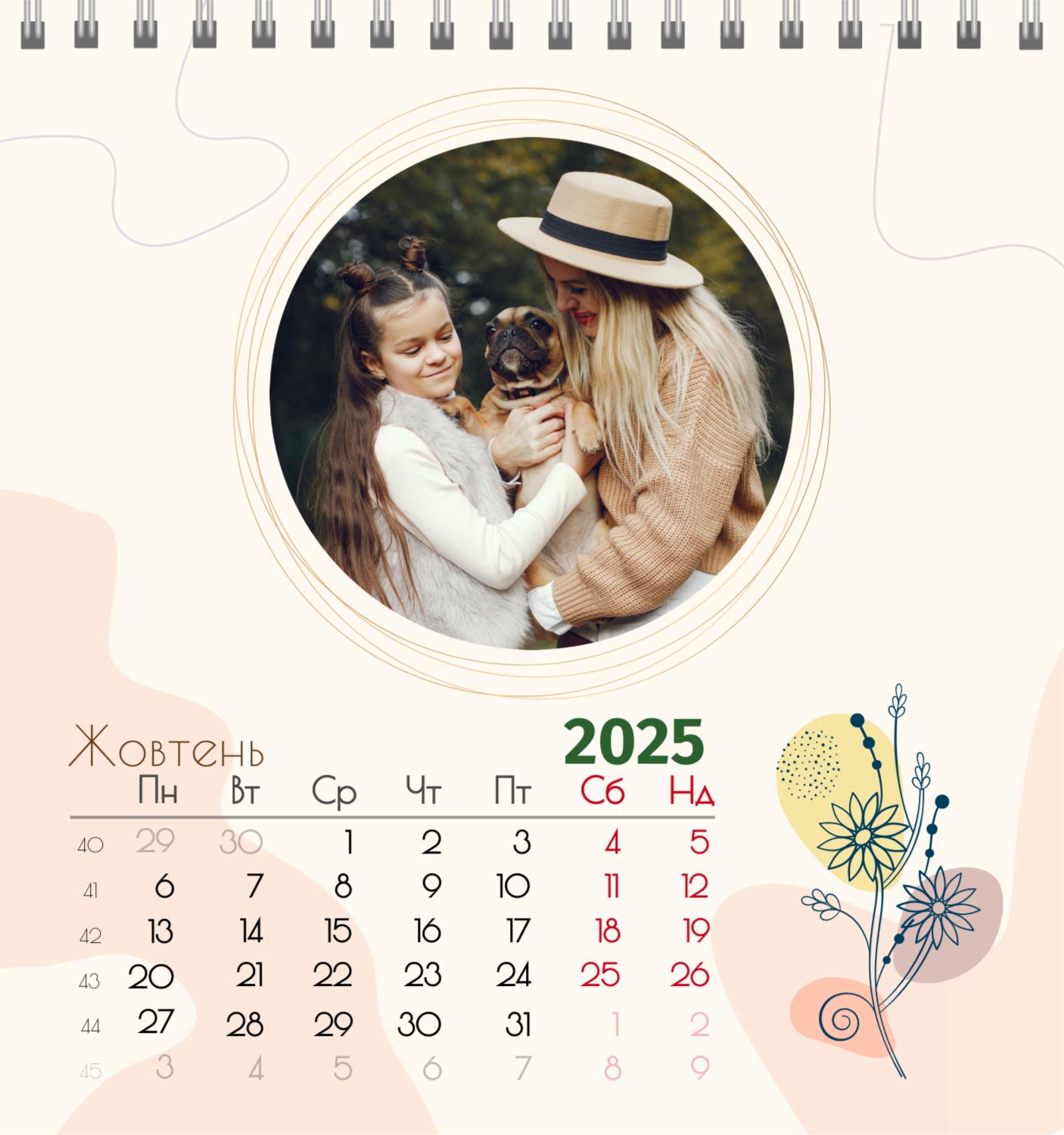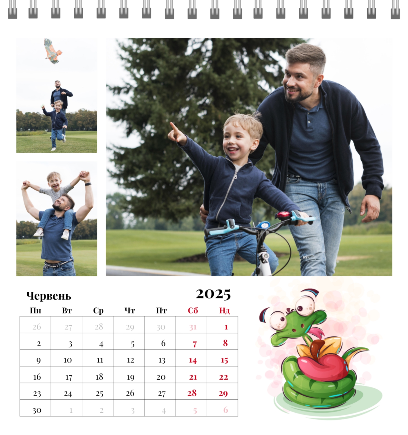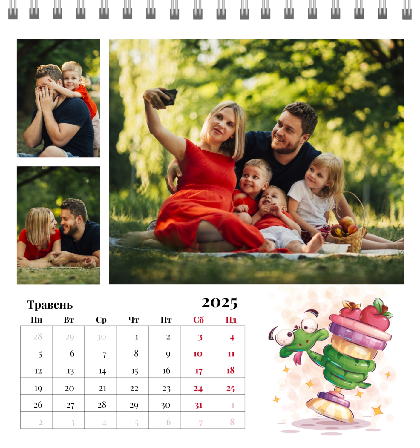 Календар з фото сім'ї-це не просто практичний інструмент для планування, а й тепле нагадування про найближчих людей. Вже готовий шаблон дозволяє легко створити унікальний настільний календар на 13 сторінок, який буде радувати вас цілий рік. Такий шаблон ідеально підходить для сімей, які бажають зберегти спогади, а також для професіоналів, які цінують індивідуальність і хочуть додати особистий акцент в свої проекти. Головна перевага цього шаблону-простота редагування в нашому онлайн-конструкторі. Ви можете додавати свої фотографії, змінювати розташування елементів, вибирати стиль шрифтів і навіть підбирати колірну гамму під свій смак. У конструкторі передбачені зручні інструменти, щоб ви могли максимально точно адаптувати календар під свої потреби. Хочете залишити більше місця для нотаток або виділити важливі дати? Це легко зробити завдяки гнучкості налаштувань.