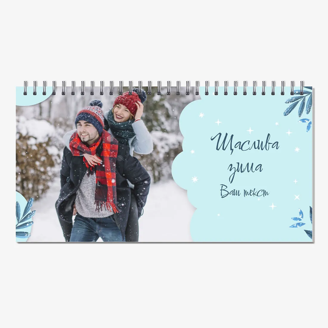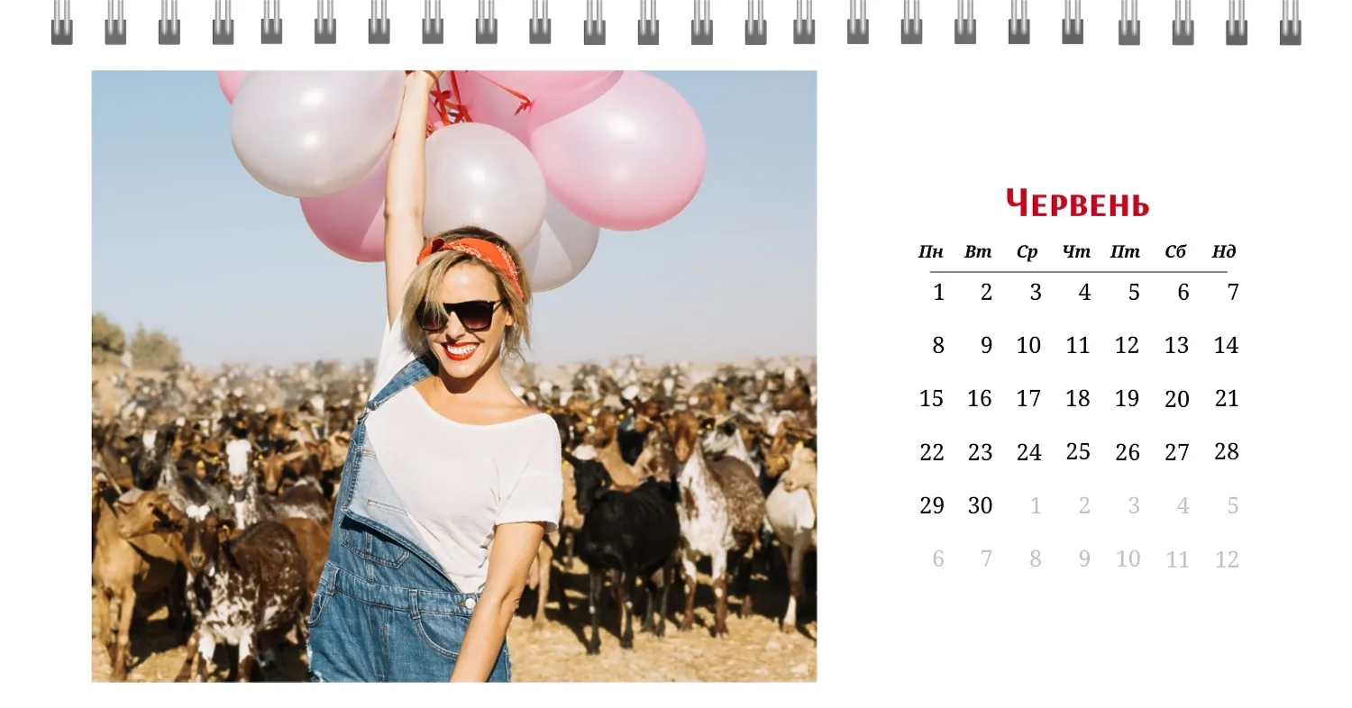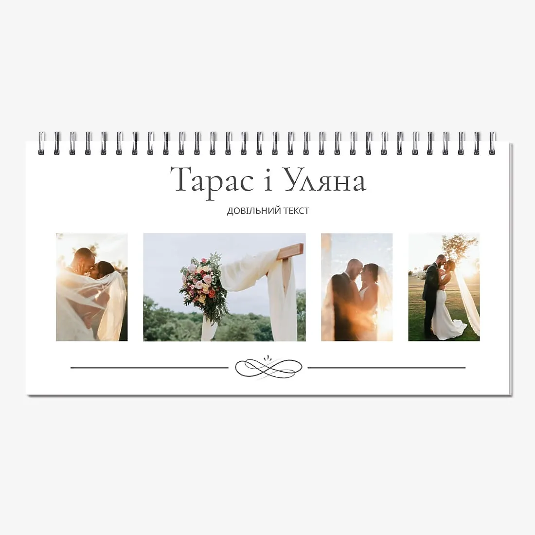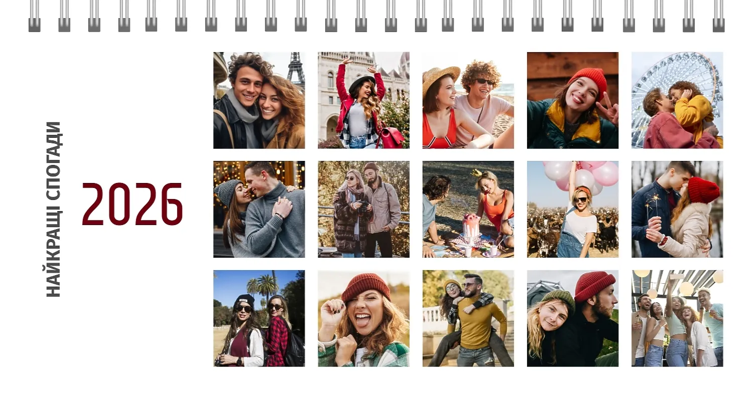 Готовий шаблон настільного календаря для закоханої пари-це ідеальний спосіб створити унікальний і зворушливий подарунок. У ньому передбачений романтичний дизайн, який підкреслює особливий зв'язок між партнерами. Такий настільний календар на 13 сторінок може стати не тільки приємним сувеніром, але і стильним елементом інтер'єру. Цей шаблон відмінно підходить для фотографів, що спеціалізуються на love story, оскільки з його допомогою можна красиво оформити професійні знімки. Головна перевага цього календаря-можливість повної персоналізації в нашому онлайн-конструкторі. Ви можете завантажувати свої фотографії, змінювати фон, додавати пам'ятні дати, романтичні підписи або навіть смішні коментарі до кожного місяця.