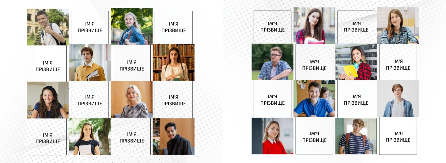Готовий шаблон випускної фотокниги в твердій обкладинці для старшої школи-це відмінний спосіб зберегти теплі спогади про шкільні роки, яскраві моменти з друзями і значущі події. Фотокнига підійде не тільки випускникам і класним керівникам, а й фотографам, які працюють з випускними альбомами, дизайнерам, які оформляють пам'ятні видання, і навіть представникам освітніх установ, що створює тематичні збірники. Редагування в конструкторі дозволяє повністю персоналізувати макет, вибираючи кольори, стилі шрифтів і розташування елементів. Можна додати підписи, цитати, логотип школи або навіть індивідуальні Обкладинки для кожного учня. Цей шаблон стане зручною основою для створення унікальної горизонтальної фотокниги в твердій обкладинці своїми руками, в якій відіб'ються кращі моменти шкільного життя.