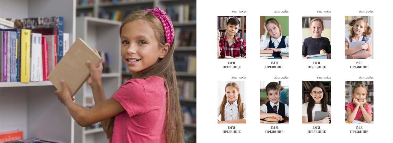 Безкоштовний шаблон фотокниги випускників середньої школи. Створіть макет своїми руками в онлайн-конструкторі фотокниг.