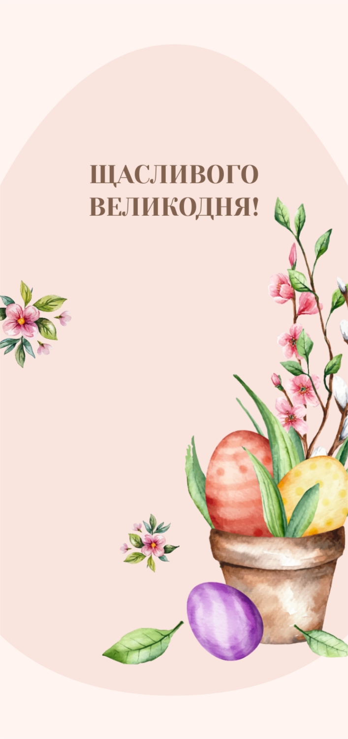 Готовий шаблон традиційної пасхальної листівки-це прекрасний вибір для тих, хто хоче створити тепле і красиве привітання з цим важливим святом. Натхненний традиційними символами Великодня, такими як великодні яйця, квіти та хрести, цей шаблон ідеально передає атмосферу веселощів та радості, характерну для свята. Він підійде для широкого кола користувачів: від представників релігійних організацій до тих, хто працює в сфері поздоровлень, подарунків та благодійності. Також він стане відмінним доповненням для сімейних листівок або привітань колег і партнерів по бізнесу. У нашому онлайн-конструкторі редагувати цей шаблон дуже зручно і просто. Користувачі можуть налаштувати колірну гамму, замінюючи фон або елементи дизайну на більш відповідні для їх аудиторії. Текст привітань можна повністю адаптувати під конкретні потреби: додати особисті побажання, логотип компанії або імена одержувачів. Онлайн-конструктор дозволяє не тільки редагувати текст, але і вносити зміни в зображення, наприклад, замінити великодні яйця на інші елементи, відповідні перевагам. Це робить процес створення листівки максимально персоналізованим і творчим.