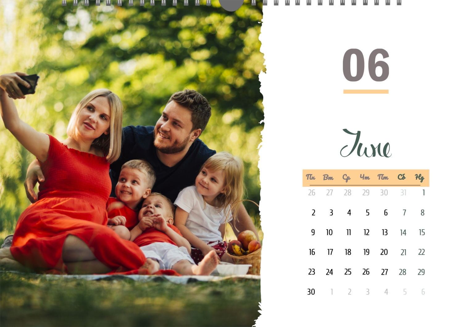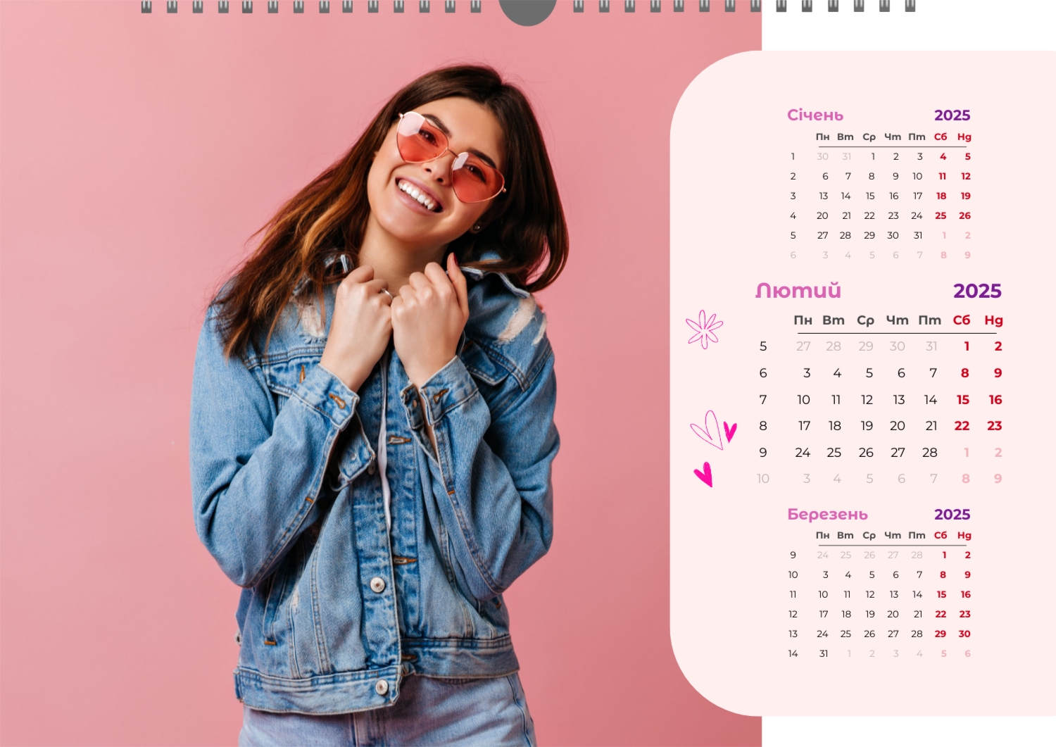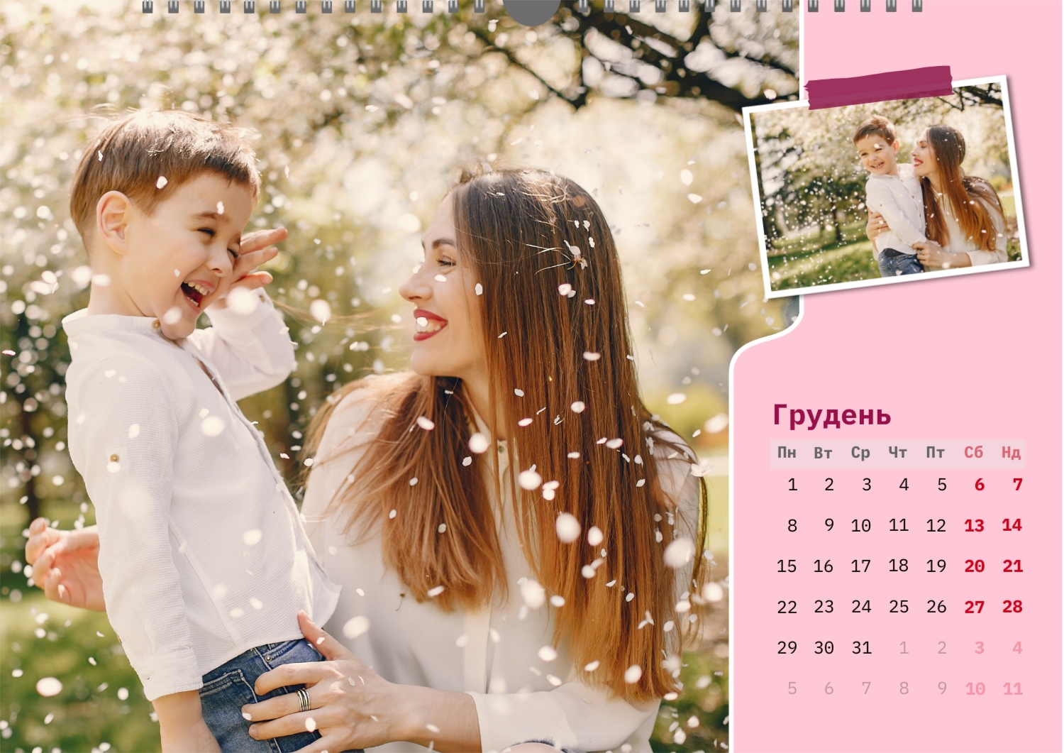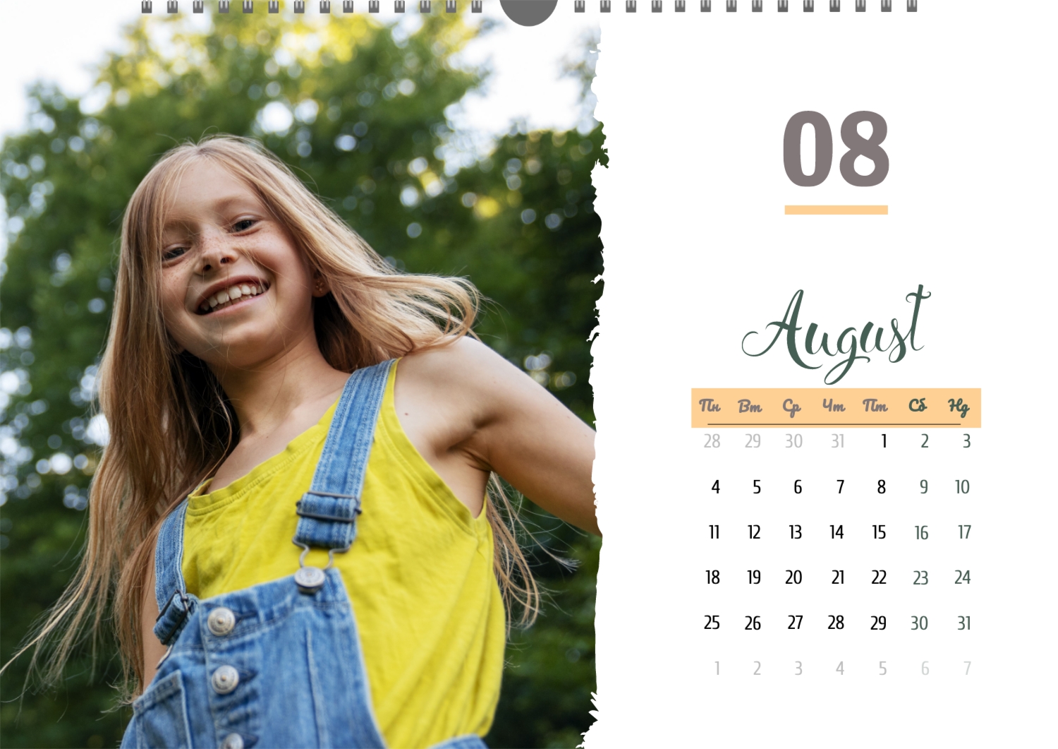 Готовий шаблон настінного горизонтального календаря для коханої мами-це зворушлива і красива основа для створення персонального подарунка, який наповнений теплом і турботою. В онлайн-конструкторі шаблон легко перетворюється в унікальний продукт. Можна вставити сімейні фотографії, вибрати улюблені моменти з життя, додати написи з теплими словами, змінити кольори і шрифти під індивідуальні переваги. Кожен місяць можна оформити в своєму стилі, вставляючи фото або побажання, пов'язані з певним часом року або важливими сімейними датами. Також доступно додавання власних свят і заміток прямо на календарну сітку. Конструктор дозволяє працювати інтуїтивно, навіть тим, хто вперше створює дизайн з нуля. Це дає повну свободу творчості і можливість створити по-справжньому унікальний настінний календар, який буде радувати маму кожен день протягом року.