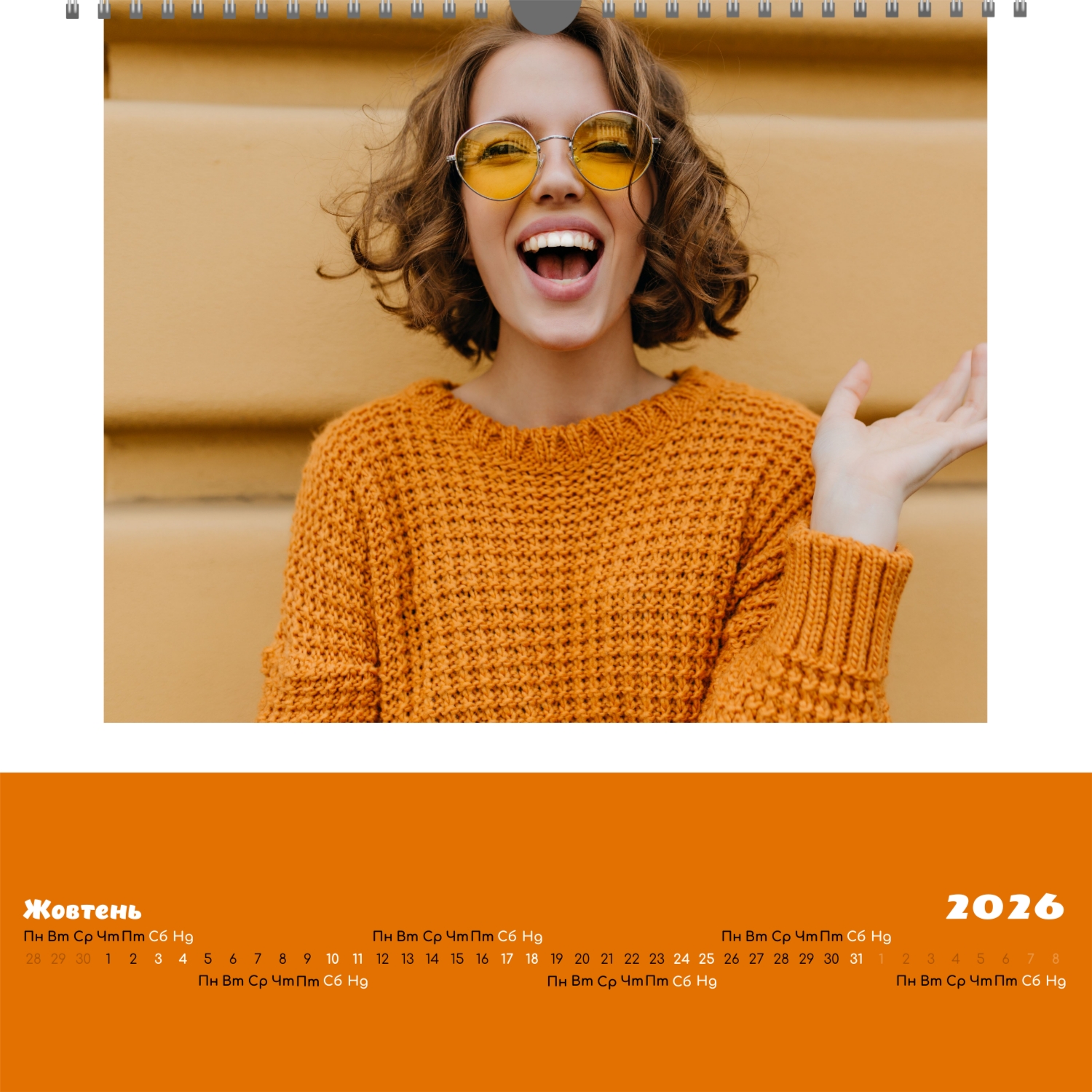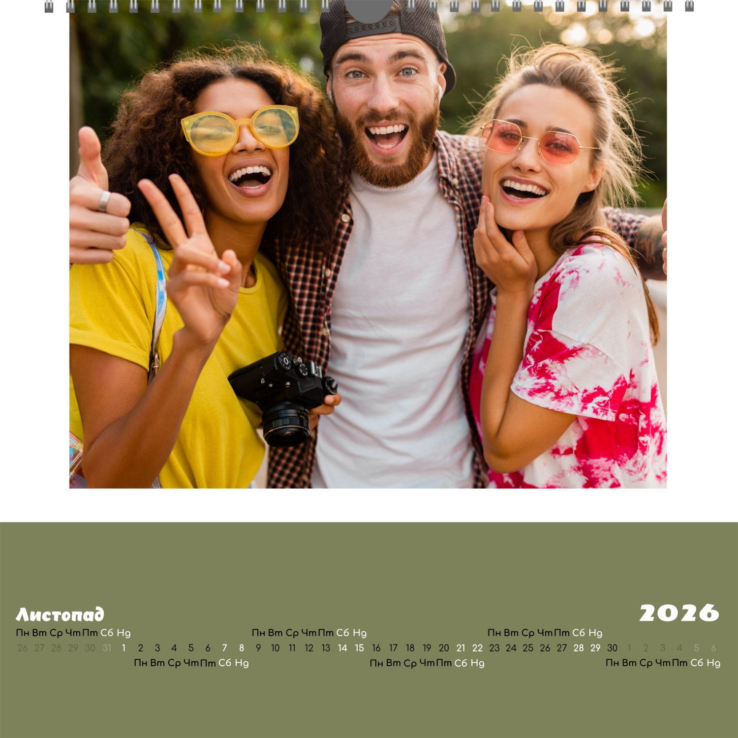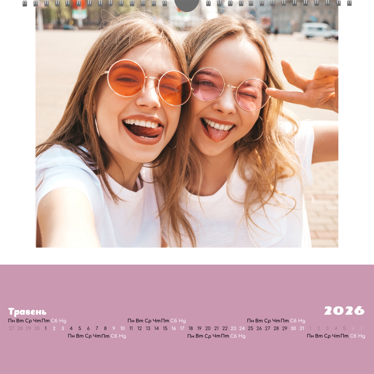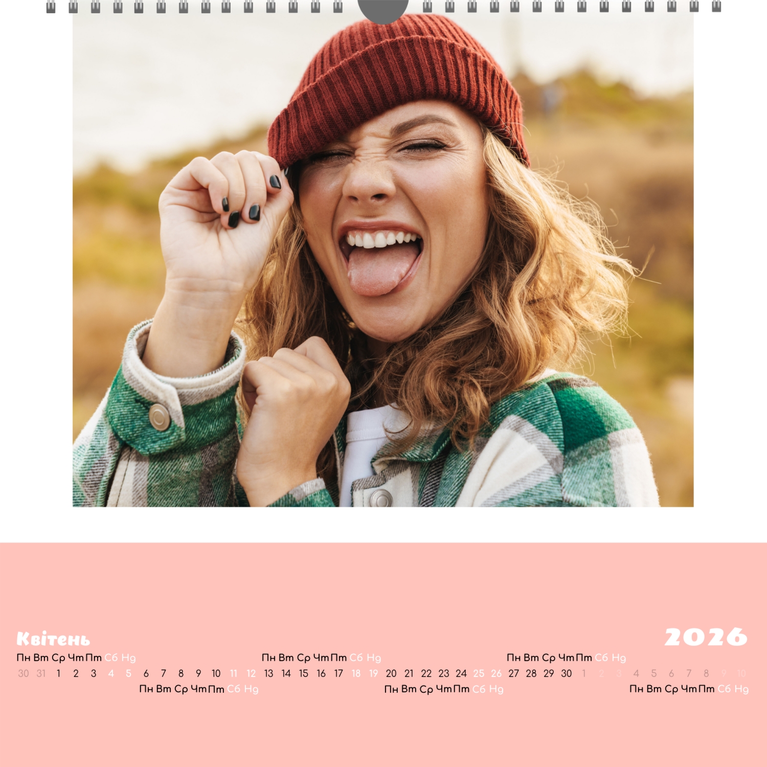 Готовий шаблон настінного квадратного календаря з напуттям на наступний рік створений для тих, хто цінує надихаючий візуальний стиль і хоче щодня отримувати невелике нагадування про мету, мотивації або важливому життєвому орієнтирі. У нашому онлайн-конструкторі шаблон легко адаптується під власний стиль і завдання. Можна змінити напуття, замінивши його на фразу, близьку саме вам або вашій команді; скорегувати колірну гамму під фірмові відтінки; замінити шрифти, налаштувати насиченість фону або додати додаткові декоративні елементи. Якщо календар призначений для корпоративного використання, зручно додати логотип компанії, сайт, контакти або навіть корпоративні внутрішні цінності, щоб календар став частиною візуальної айдентики. Для особистого використання можна завантажити фотографії, вибрати улюблені кольори та оформити календар у теплій, надихаючій або мінімалістичній манері. Редагування відбувається прямо в браузері і не вимагає складних навичок дизайну: всі елементи можна перетягувати, змінювати їх розмір, повертати, видаляти або доповнювати. В результаті виходить повністю унікальний настінний календар, створений своїми руками, який не тільки прикрасить простір, але і стане м'яким, але впевненим нагадуванням про обраному напрямку на рік вперед.