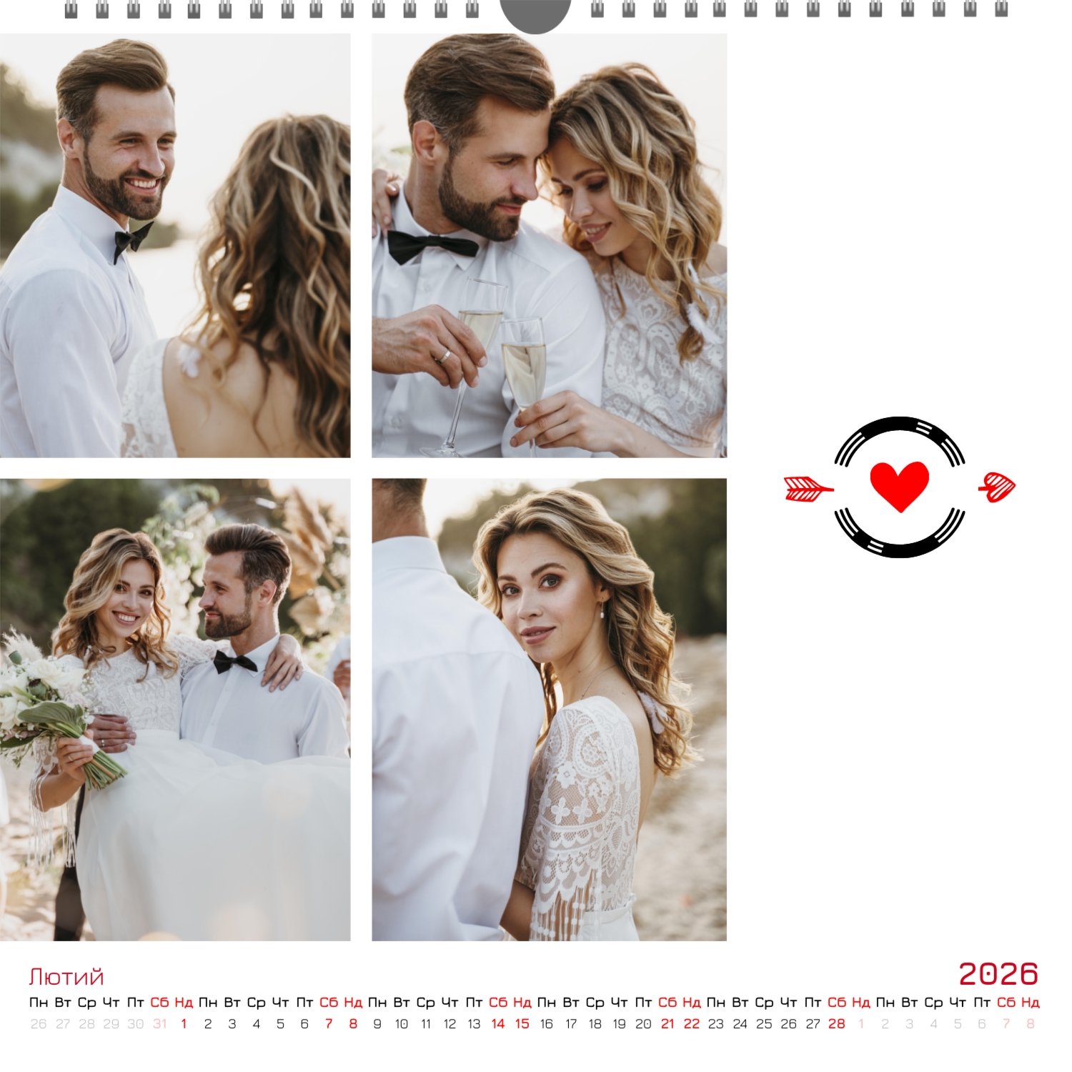 Готовий шаблон настінного календаря з поздоровленням виконаний в мінімалістичному і сучасному стилі, де кожен місяць зустрічає користувача коротким привітанням. В онлайн-конструкторі цей шаблон можна легко адаптувати під особисті або корпоративні завдання. Є можливість змінити фон, вибрати інші поєднання шрифтів, замінити привітальні фрази або залишити їх у вихідному вигляді, скорегувати колірну гамму, Додати фотографії, ілюстрації або фірмову графіку. При необхідності можна вставити логотип компанії, контактні дані або мотиваційні цитати, щоб календар став частиною корпоративного стилю або персональним творчим об'єктом для натхнення. Редагування відбувається безпосередньо в браузері, без необхідності встановлювати додаткові програми. Всі елементи можна переміщати, масштабувати і налаштовувати так, щоб календар виглядав гармонійно і відображав характер користувача або бренду. В результаті виходить повністю індивідуальний календар, створений своїми руками на основі продуманого шаблону, який залишається одночасно зручним, функціональним і візуально привабливим.