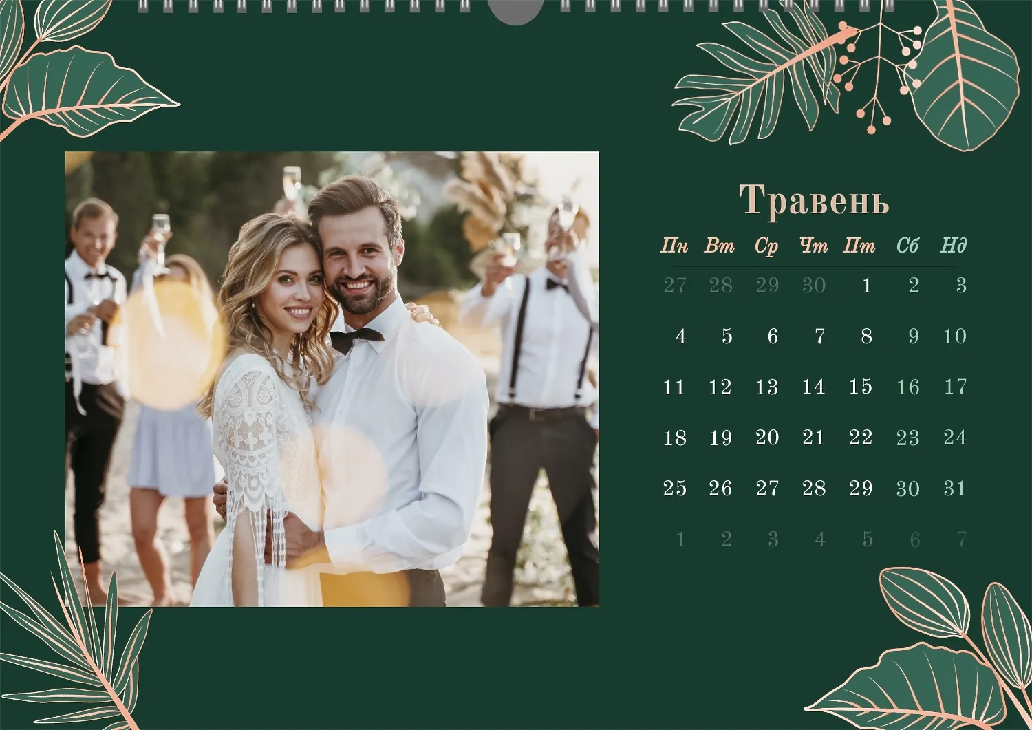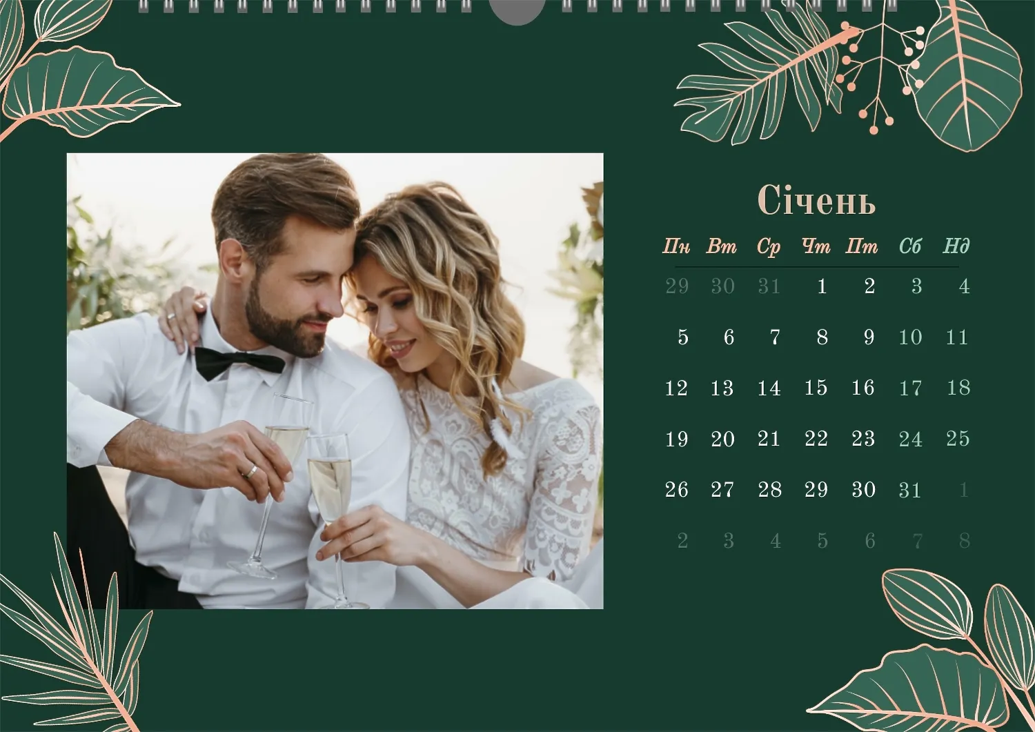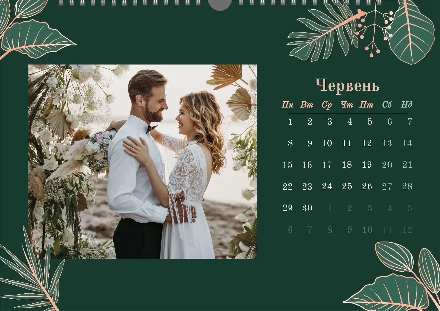 Календар "Наша сім'я" з весільними фото — це готовий шаблон, який прекрасно підходить для створення унікального і пам'ятного сімейного календаря. Його теплий і романтичний стиль робить його ідеальним для пар, які бажають зберегти спогади про весілля, або для тих, хто хоче подарувати близьким щось особливе. Такий Настінний Горизонтальний календар може стати відмінним подарунком для батьків, родичів або навіть друзів, які були частиною вашого важливого події. Ви можете замінити фотографії на свої, підбираючи найбільш зворушливі моменти весілля, змінити підписи, додавши імена, дати або короткі фрази, які будуть нагадувати про яскраві моменти вашої історії. В онлайн-конструкторі також легко адаптувати кольори, шрифти і розташування елементів, щоб календар повністю відображав вашу унікальність і стиль. Створення такого календаря своїми руками не вимагає спеціальних навичок. Інтуїтивно зрозумілий інтерфейс конструктора дозволяє експериментувати з дизайном, поки результат не стане ідеальним. Підсумковий календар стане не просто функціональним виробом, а й емоційною сімейною реліквією, яка буде радувати вас і ваших близьких протягом усього року.