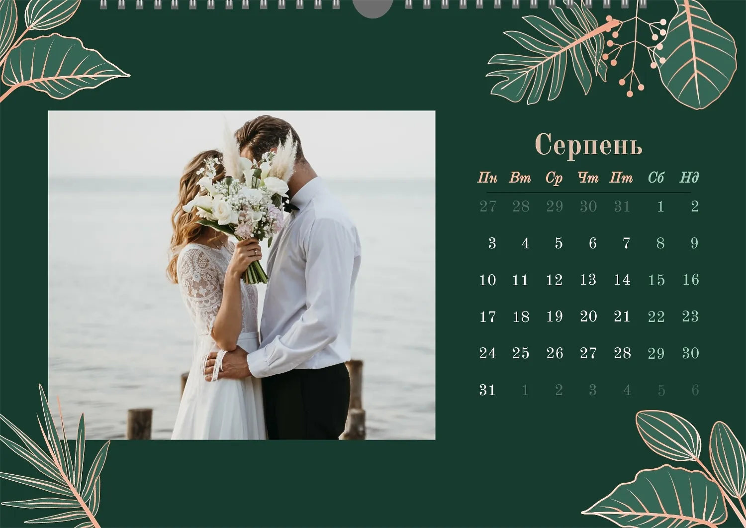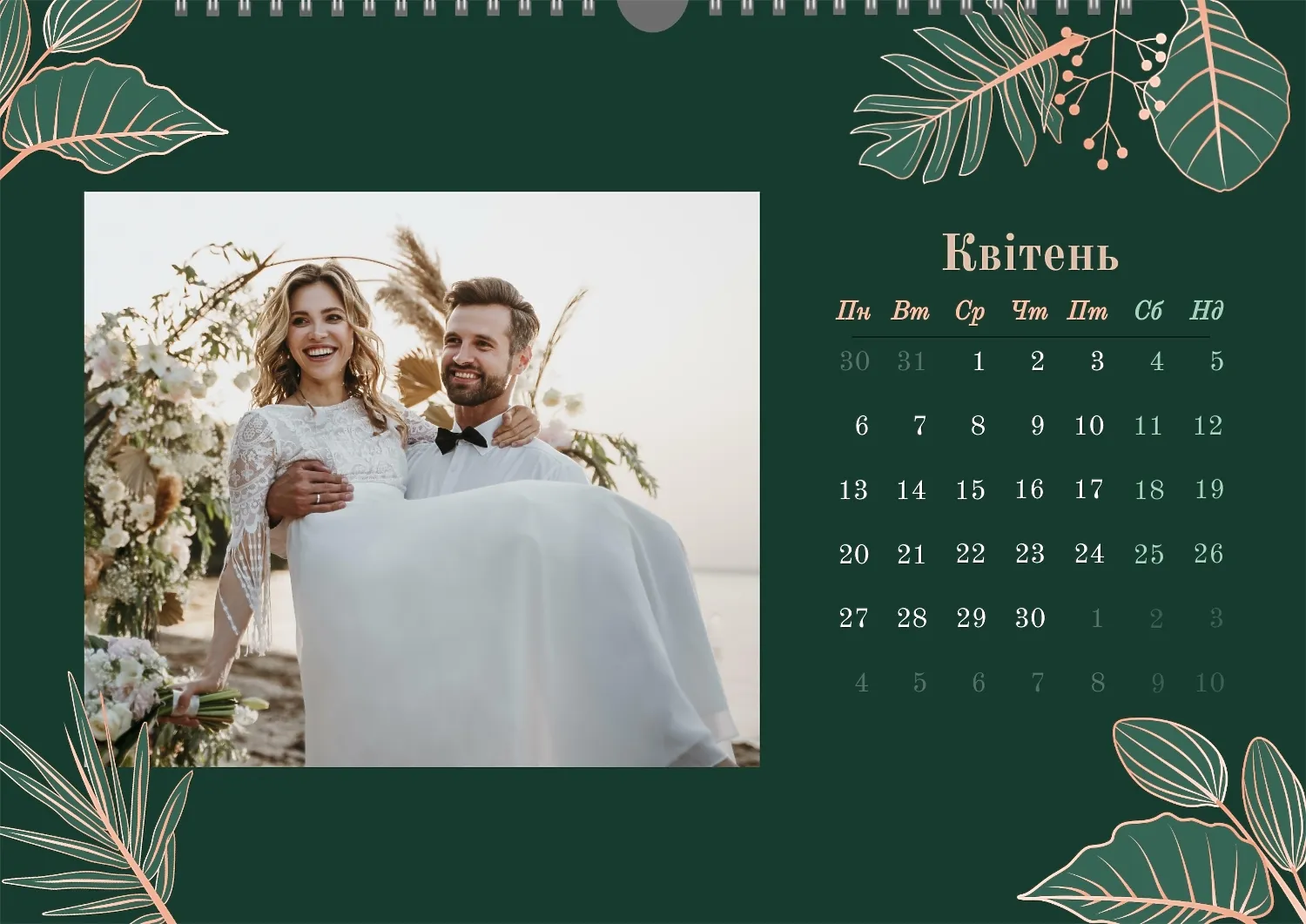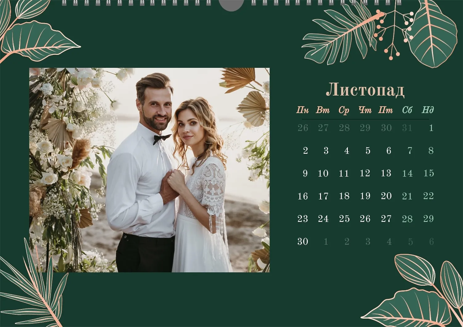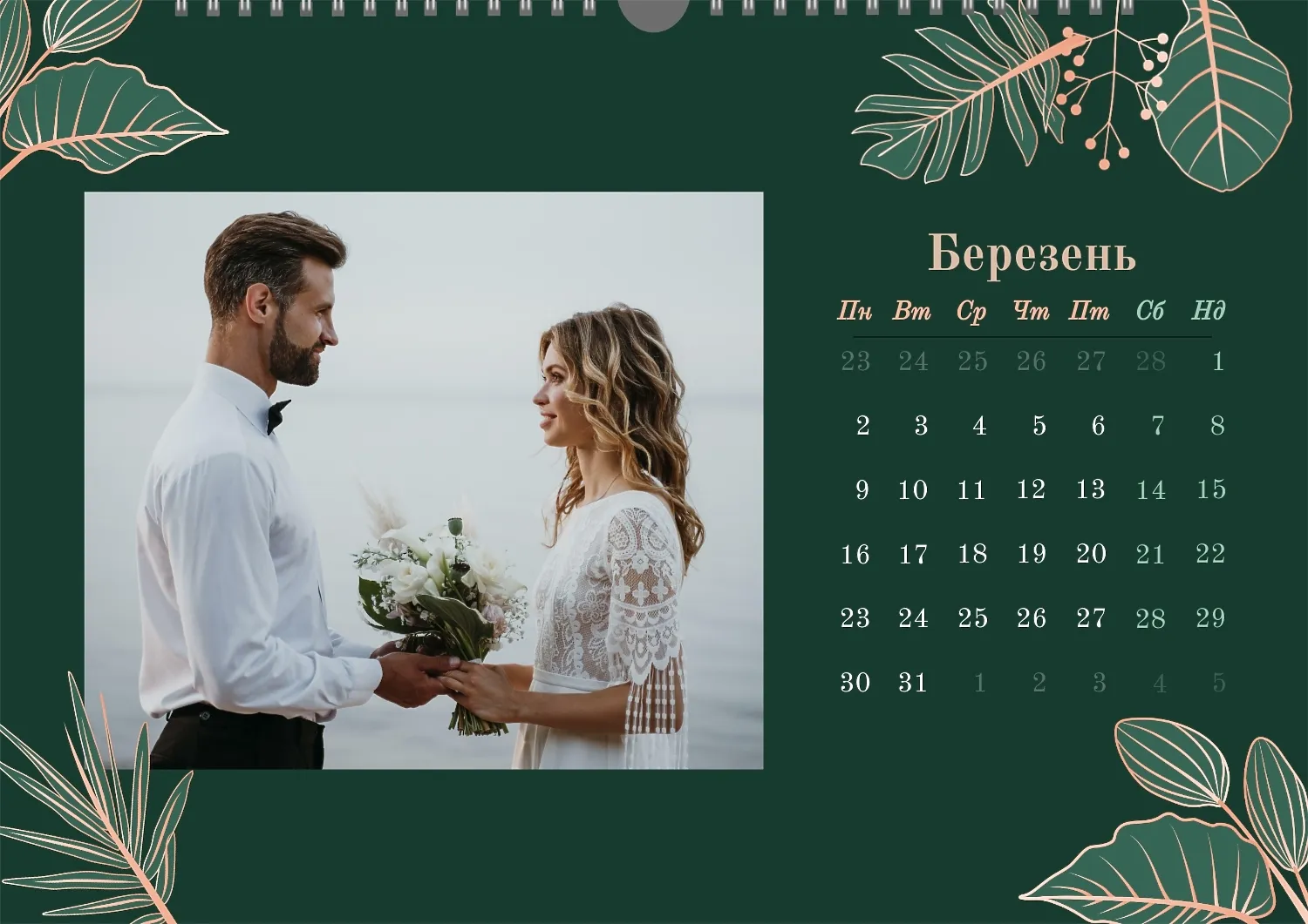 Календар "Наша сім'я" з весільними фото — це готовий шаблон, який прекрасно підходить для створення унікального і пам'ятного сімейного календаря. Його теплий і романтичний стиль робить його ідеальним для пар, які бажають зберегти спогади про весілля, або для тих, хто хоче подарувати близьким щось особливе. Такий Настінний Горизонтальний календар може стати відмінним подарунком для батьків, родичів або навіть друзів, які були частиною вашого важливого події. Ви можете замінити фотографії на свої, підбираючи найбільш зворушливі моменти весілля, змінити підписи, додавши імена, дати або короткі фрази, які будуть нагадувати про яскраві моменти вашої історії. В онлайн-конструкторі також легко адаптувати кольори, шрифти і розташування елементів, щоб календар повністю відображав вашу унікальність і стиль. Створення такого календаря своїми руками не вимагає спеціальних навичок. Інтуїтивно зрозумілий інтерфейс конструктора дозволяє експериментувати з дизайном, поки результат не стане ідеальним. Підсумковий календар стане не просто функціональним виробом, а й емоційною сімейною реліквією, яка буде радувати вас і ваших близьких протягом усього року.